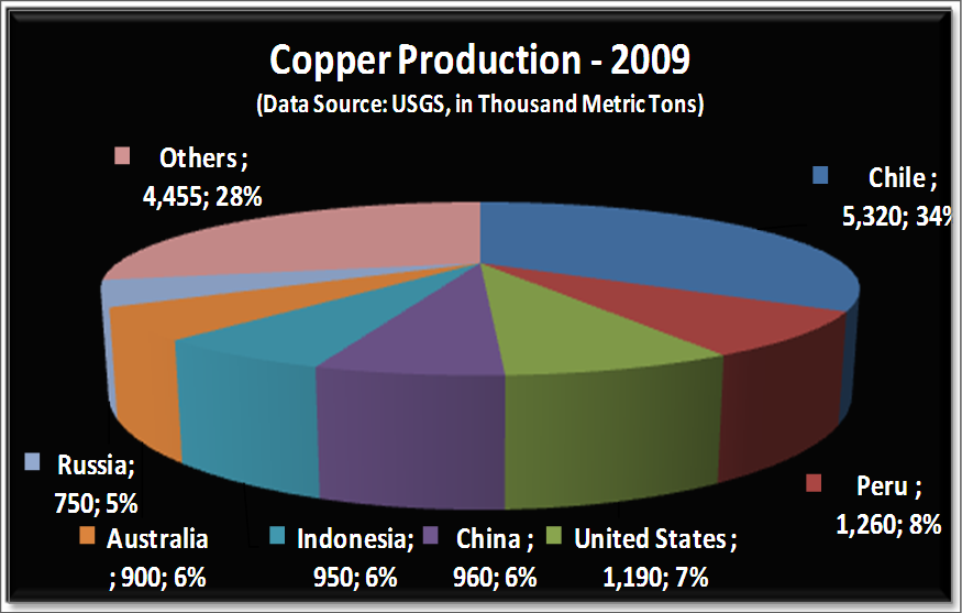 Fortunately, unlike rare earth metals , whose supply is single-sourced to China, Copper has a more diversified supply base. Chile, Peru and the U.S. account for around 50% of the world’s copper production, with Chile supplying over one third of the world’s copper demand (See Chart).