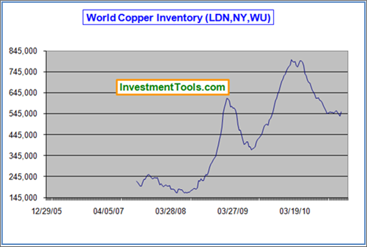 Some analysts cited declining stocks level as another bullish indication. But recent data show LME copper inventories rose to a 3-month high (See Inventory Chart), and bear in mind that China is widely believed to have huge stock piles of unreported government and industry inventories.