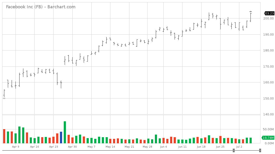 On Friday Facebook hit an all time high of over $203 a share, and all it took to run up the stock 5% or $11 in two days was an analyst upgrade, but that is what you get in bubble stocks in a bubble market. Right as Facebook was about to break ket technical support around $192 a share on more troubles regarding privacy disclosure issues, an analyst came out with this upgrade out of his ass propelling the stock to a new high. The timing of the analyst call seems highly questionable as Facebook was at this level a couple of weeks ago, and then new information regarding the FBI, FTC and the SEC joining the Justice Department`s investigation into Facebook`s Cambridge Analytica disclosures sent the stock reeling, and on the verge of breaking down hard below the $192 support level, before being magically revived by this analyst call. You think somebody was stuck this stock at all time highs and needed an analyst upgrade to have some other bagholders to sell into going into earnings? That is my best guess! This is Wall Street we are talking about, and things usually don`t just magically appear out of thin air!