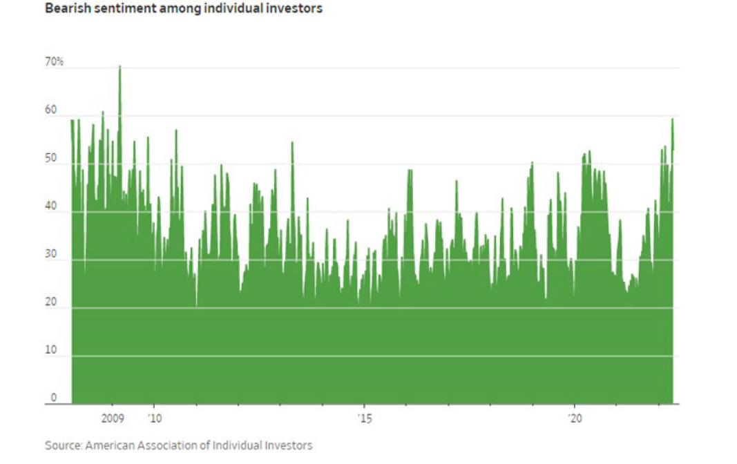 In addition, the American Association of Individual Investors (AAII) survey indicates ~60% of investors believe the stock market will fall in the next six months – levels not seen since March 2009 in the depths of the financial crisis.