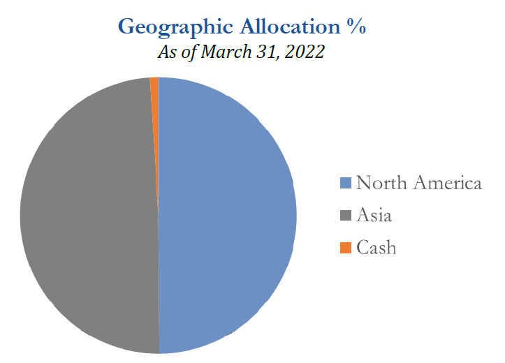 Meanwhile, our portfolio ended the year with ~49% of our assets invested in Asia and ~50% in North America, with the remainder in cash. Our Australian position was acquired in Q1 2022.