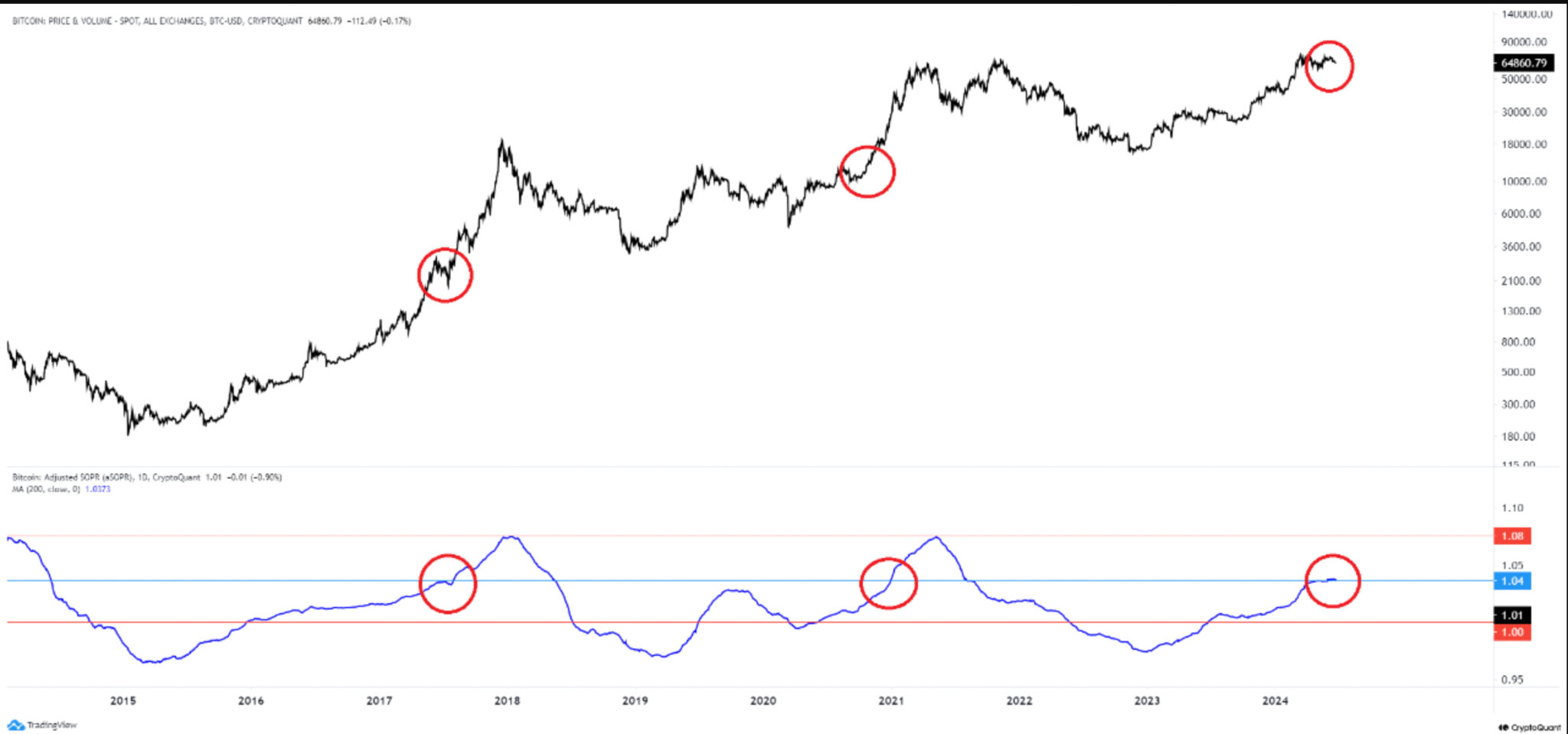 Bitcoin price vs. aSOPR performance chart. Source: CryptoQuant
