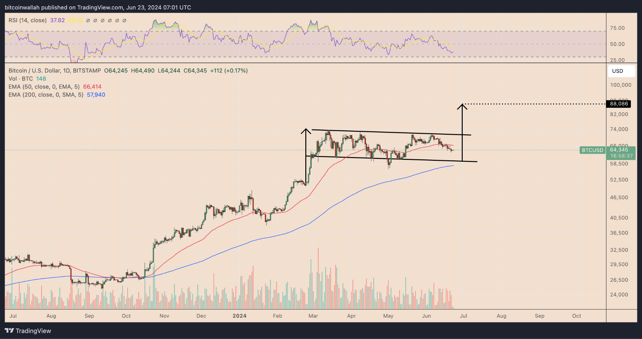 As a result of this technical rule, BTC’s price is eyeing a run-up toward $88,000 by August, an uptrend receiving support from the aSOPR and MVRV Ratio metrics discussed above. Meanwhile, Bitcoin’s daily relative strength index is treading around its oversold threshold of 30, which further boosts its possibility of continuing its bull run in the coming months.