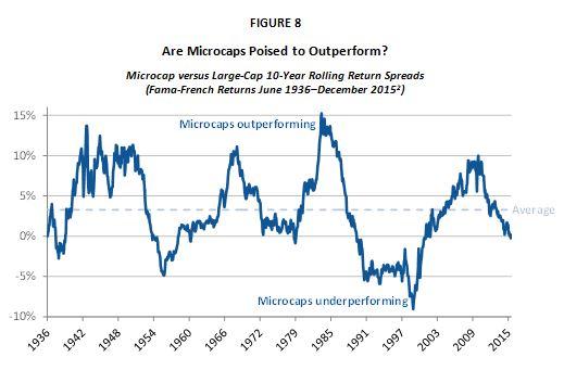 Despite being cheaper than their historical average, microcaps have also been somewhat out of favor as they have underperformed large-cap stocks since 2009, as illustrated by Figure 8 below. While this trend could persist, it also may be at an inflection point given lower relative valuations.
