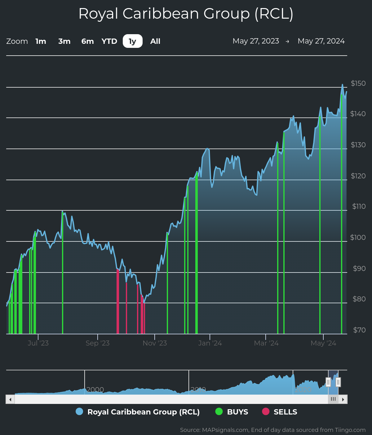 RCL has been a top-rated stock at MAPsignals for a while. That means the stock has unusual buy pressure and growing fundamentals. We have a ranking process that showcases stocks like this on a weekly basis.