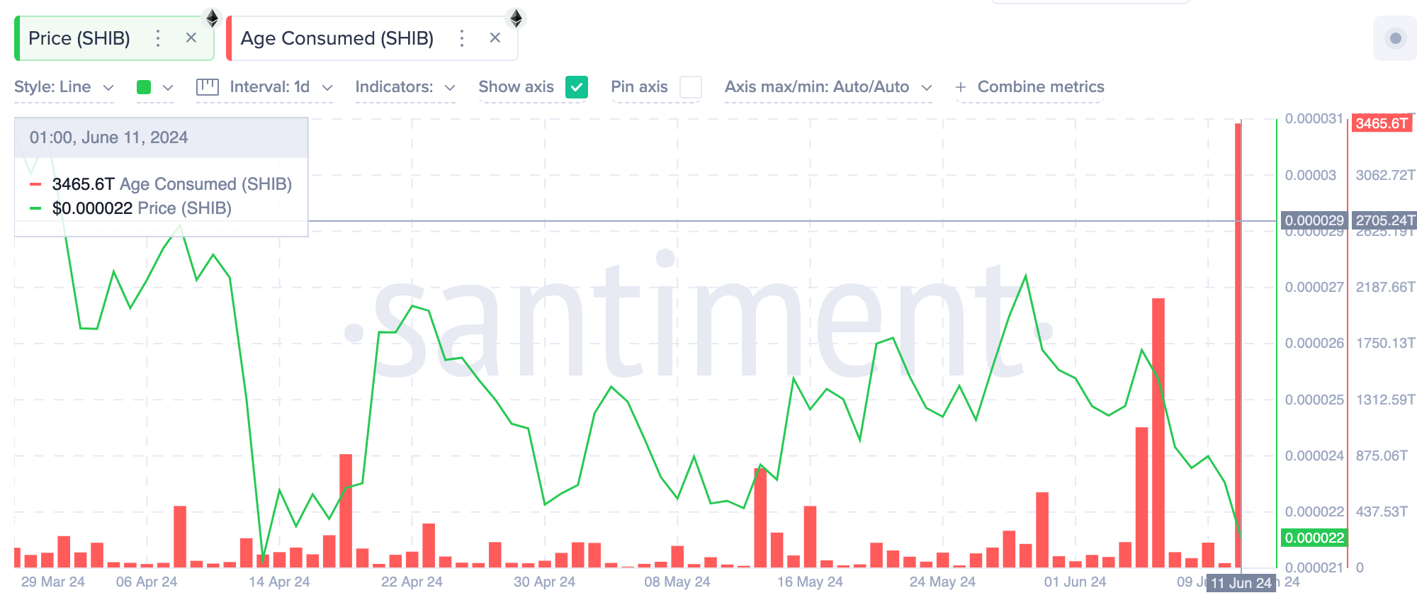 Shiba Inu price vs SHIB Age Consumed | Santiment