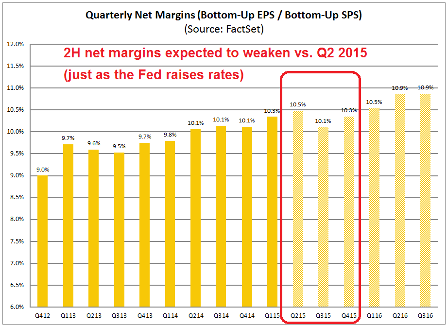 Some of the weakness has already been incorporated into expectations. Analysis from John Butters showed that net margins are expected to decline in the next two reporting quarters (annotations are mine):