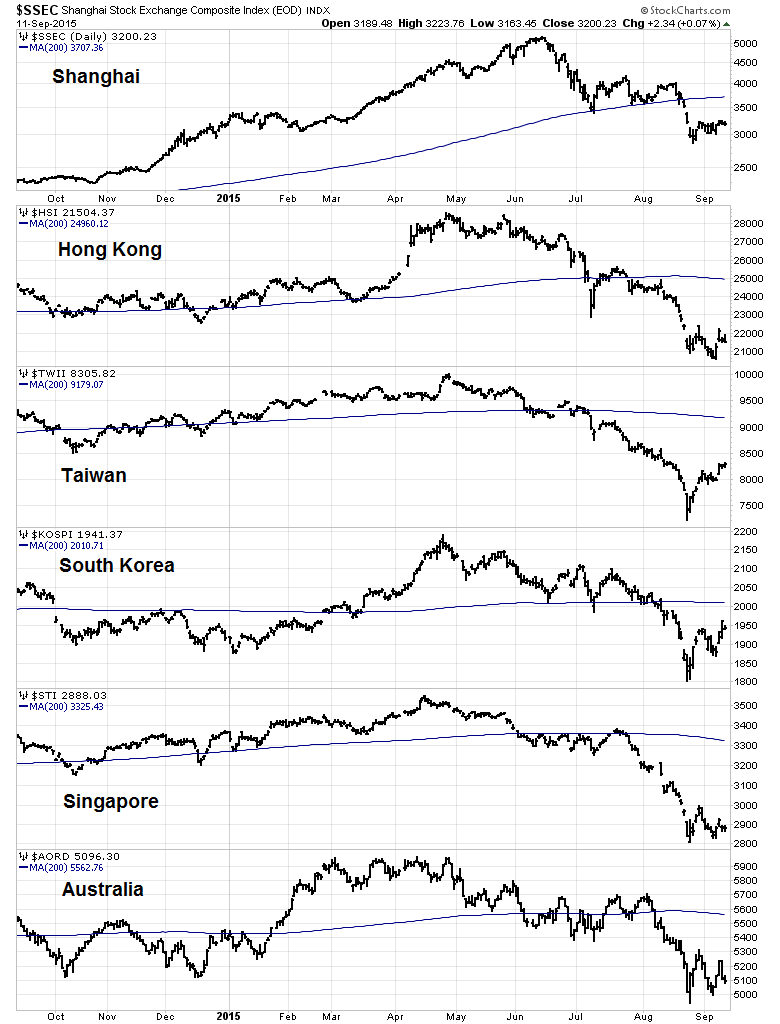 Indeed, a glance at Asian stock markets reveal that all of the markets of Chinese trading partners trading well below their 200 dma.