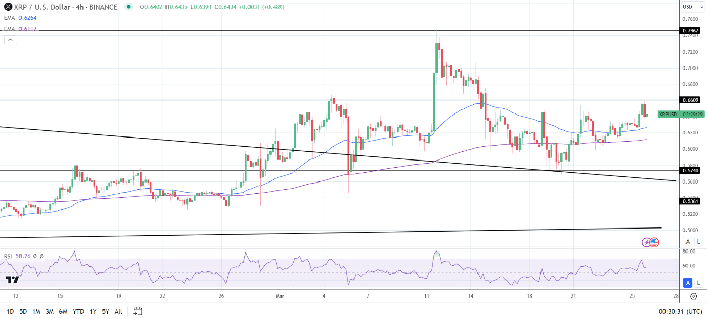 An XRP break above the $0.6609 resistance level would support a move toward the $0.7467 resistance level.