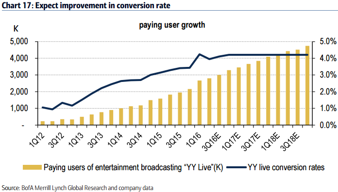 Being the largest player, YY will continue to be one of the largest beneficiaries of the industry growth.