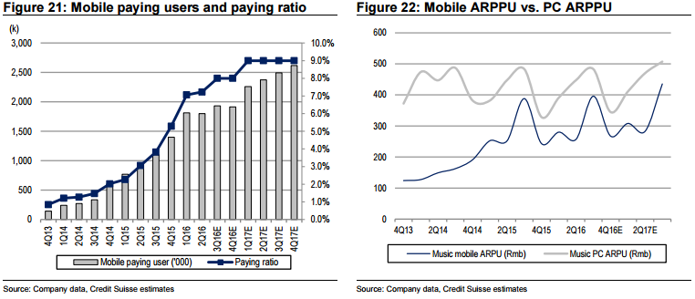Game broadcasting is a challenging business as the operating cost is very high. The range of annual compensation for the top 10 hosts was 10 to 20 million RMB in Jan. 2015 the same is 17 to 40 million RMB in May 2016. Therefore, future growth will continue to favor the larger players who have more capital and resources to expand. In fact, we see promising trends of achieving greater operating leverage in this segment in recent earnings. Paying user is up 105% QoQ or 134% YoY in 3Q. Mobile contributed 39% of its revenues, a big step-up from 25% in 2Q.