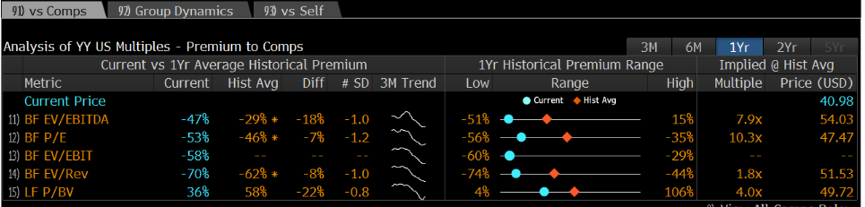 YY has historically been trading below its other public peers but the discount becomes even wider (more than 1SD below average) lately.