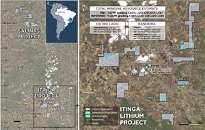 The Project is located between the towns of Araçuaí and Itinga within Brazil’s “Lithium Valley” - a hard rock lithium district that is quickly emerging as an important global lithium producer. The MRE includes the Bandeira and Outro Lado (Galvani) lithium deposits (see Figure 1), on properties which together cover only 872 hectares within its large land package of 14,182 hectares.