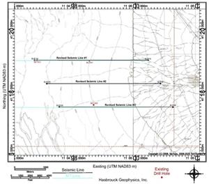- There will be an 11.0 line-km two-dimensional (2D) reflection seismic survey along three lines over a portion of the Bonnie Claire, Nevada claims. The reflection seismic survey will map stratigraphy, bedrock topography, structures within the sediments and bedrock, and the dip, continuity, and extent of aquifer units.