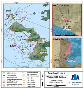 VANCOUVER, British Columbia, April 03, 2023 (GLOBE NEWSWIRE) -- Standard Uranium Ltd. (“Standard Uranium” or the “Company”) (TSX-V: STND) (OTCQB: STTDF) (Frankfurt: FWB:9SU) is pleased to announce that the winter drill program at its 100% owned Sun Dog Project (“Sun Dog” or “the Project”) has been completed and crews demobilized prior to ice road closure April 1st. Sun Dog is located at the northwestern edge of the Athabasca Basin, Saskatchewan, and is south of the first uranium mining camp in Canada, the Beaverlodge District, near Uranium City.